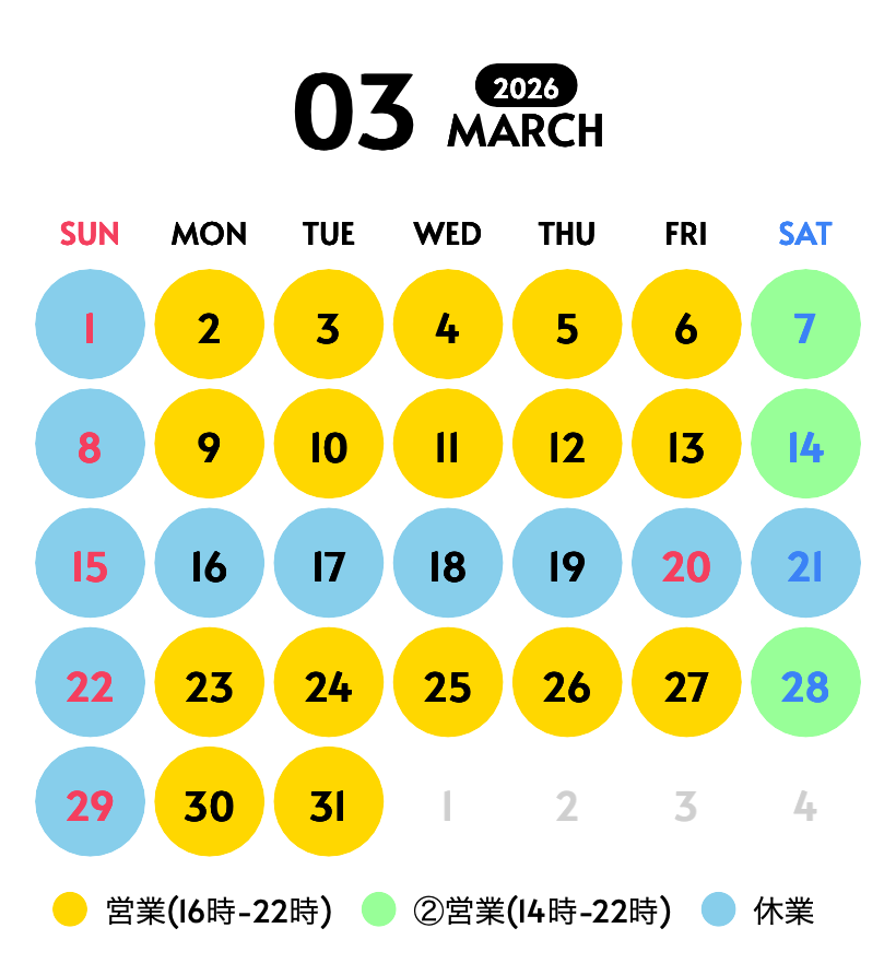 2026年3月日程のお知らせ 2026 2/24 お知らせ 2026年2月24日 2026年3月のカレンダーは以下の通りです。 3月16日(月)〜3月21日(土)までの期間は春休み期間でお休みとなりますのでご了承ください。 お知らせ よかったらシェアしてね! URLをコピーしました! URLをコピーしました! 勉強の習慣化〜普段の生活の中に勉強を取り入れよう〜 2026年度塾内カレンダー 春限定!選べる2種類の体験コース 入塾金 0円 通常授業料 20%OFF 最大30日・190時間 春季短期スタンダードコース 9,900円(税込) 1対1個別指導×4回 マンツーマン個別指導コース 9,900円(税込) 3/2(月)〜5/1(金)までの期間で受講できます \ 春休みにガッツリ勉強しよう / 体験コースの申し込みはこちら ※先着順となりますのでお早めにお申し込みください。 ※小中学生は別途テキストの購入も可能です。 関連記事 2026年度塾内カレンダー 2026年2月24日 勉強の習慣化〜普段の生活の中に勉強を取り入れよう〜 2026年2月17日 2026年2月日程のお知らせ 2026年1月29日 2026年1月日程のお知らせ 2026年1月3日 2025年12月日程のお知らせ 2025年11月25日 中3生向け土曜入試対策講座を実施します 2025年11月18日 2025年11月日程のお知らせ 2025年10月27日 2025年10月日程のお知らせ 2025年9月28日